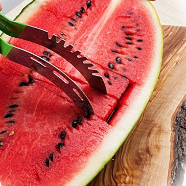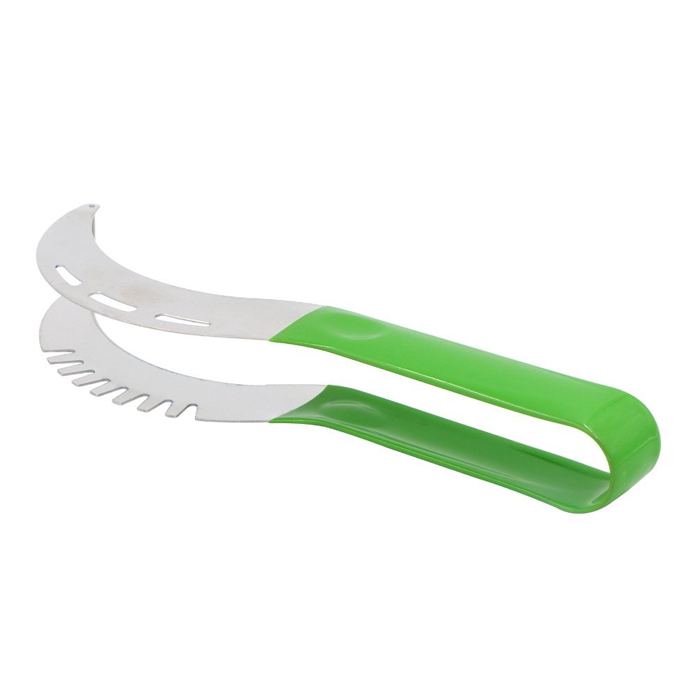 With this watermelon knife slicer, you can cut up a watermelon needn't touch it at all with your hands.Furthermore,to protect hands,the product are designed to be added on a PVC cover. It's easy to operate for the watermelon slicer cutter. Help you cut watermelons into consistent size pieces.Even the novice chef can cut it beautiful and make a perfect salad. Not only for the WATERMELON,you can also use it for CANTALOUPE and HONEYDREW.Enjoy various fruits